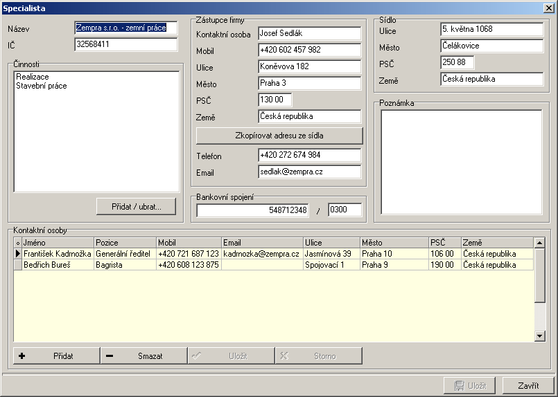 Jako podpůrné evidence najdete v sepru evidenci investorů (zákazníků), specialistů (subdodavatelů) a zaměstnanců firmy. Systém umožňuje všechna data zobrazit v přehledných sestavách, které lze dále tisknout nebo exportovat do několika formátů. Všechny sestavy standardně dodáváme upravené podle vašich požadavků a firemních standardů. Kromě toho jsou sestavy editovatelné uživatelem, případné změny v sestavách tedy můžete provádět sami bez nutnosti servisního zásahu. Na vaše přání zabudujeme do systému i další sestavy podle vašich požadavků.